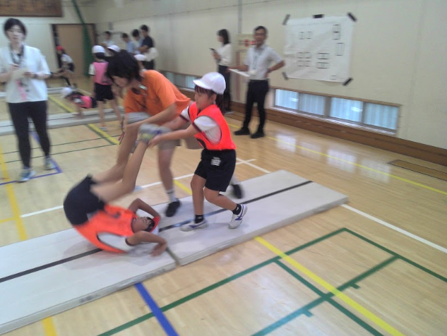 9月25日(木)3年2組でマット運動の研究授業がありました。3年生では、キャンバ(Canva)というデザイン作成ツールを使って、準備運動や手本の動画を視聴して運動したり、めあてやポイントを確認したりしながらマット運動に取り組んでいます。言葉だけではなく、目から入る情報を生かしながら、子供たちは楽しそうに体を動かすとともに、さまざまな技や動きにチャレンジしていました。