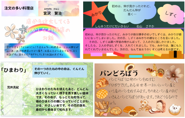 様々な活動の中で、Chrome Bookを使いこなせるようになってきている4年生ですが、9月から『Canva』を使い始めました。 まずは国語の単元で、本のポップを作ってみました。 たくさんのデザインの中から、自分のイメージに合ったものを探し、題名やあらすじを打ち込んで、完成させ、友達と紹介し合いました。