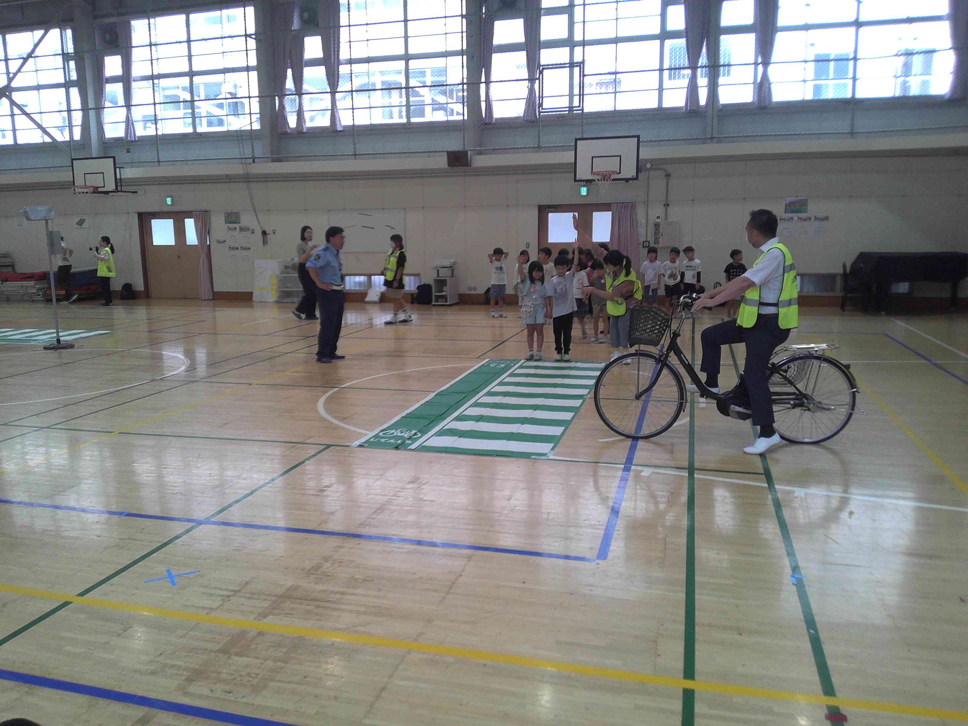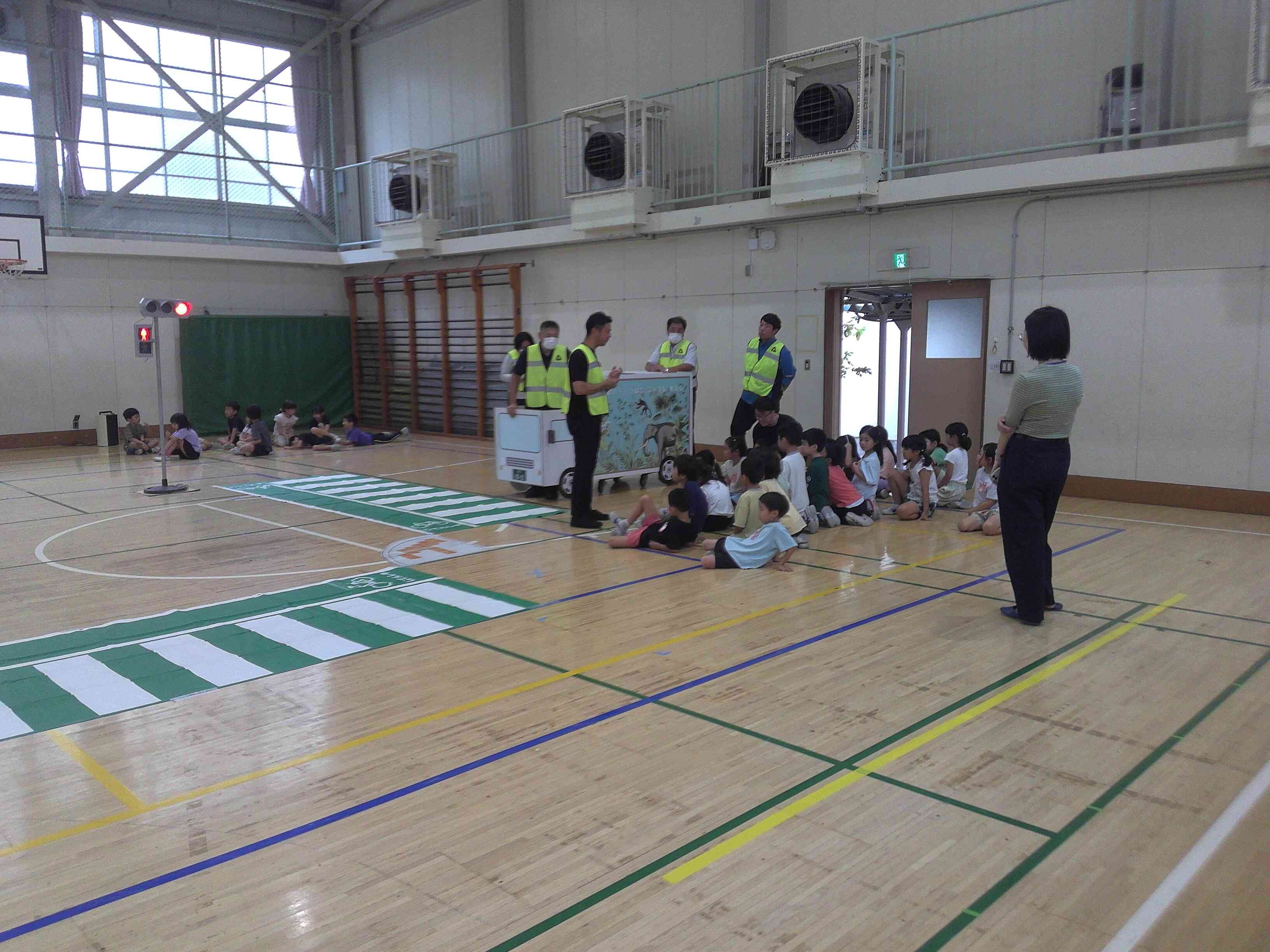 10月3日(金)に深川警察署、トラック協会の方々をお迎えし、セーフティ教室を実施しました。 トラックが停車しているときの死角と内輪差について、横断歩道の渡り方、視界が悪い道路の渡り方の3つの状況を設定し、トラックの模型や自転車などを使って実践的に教えていただきました。子どもたちは、内輪差などの難しい言葉も楽しみながら覚えることができました。 深川警察署およびトラック協会の皆様、本当にありがとうございました。【添付ファイル】